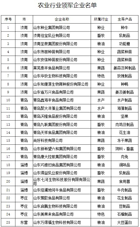 - 2025-01-25131家!山东省农业行业领军企业公示
